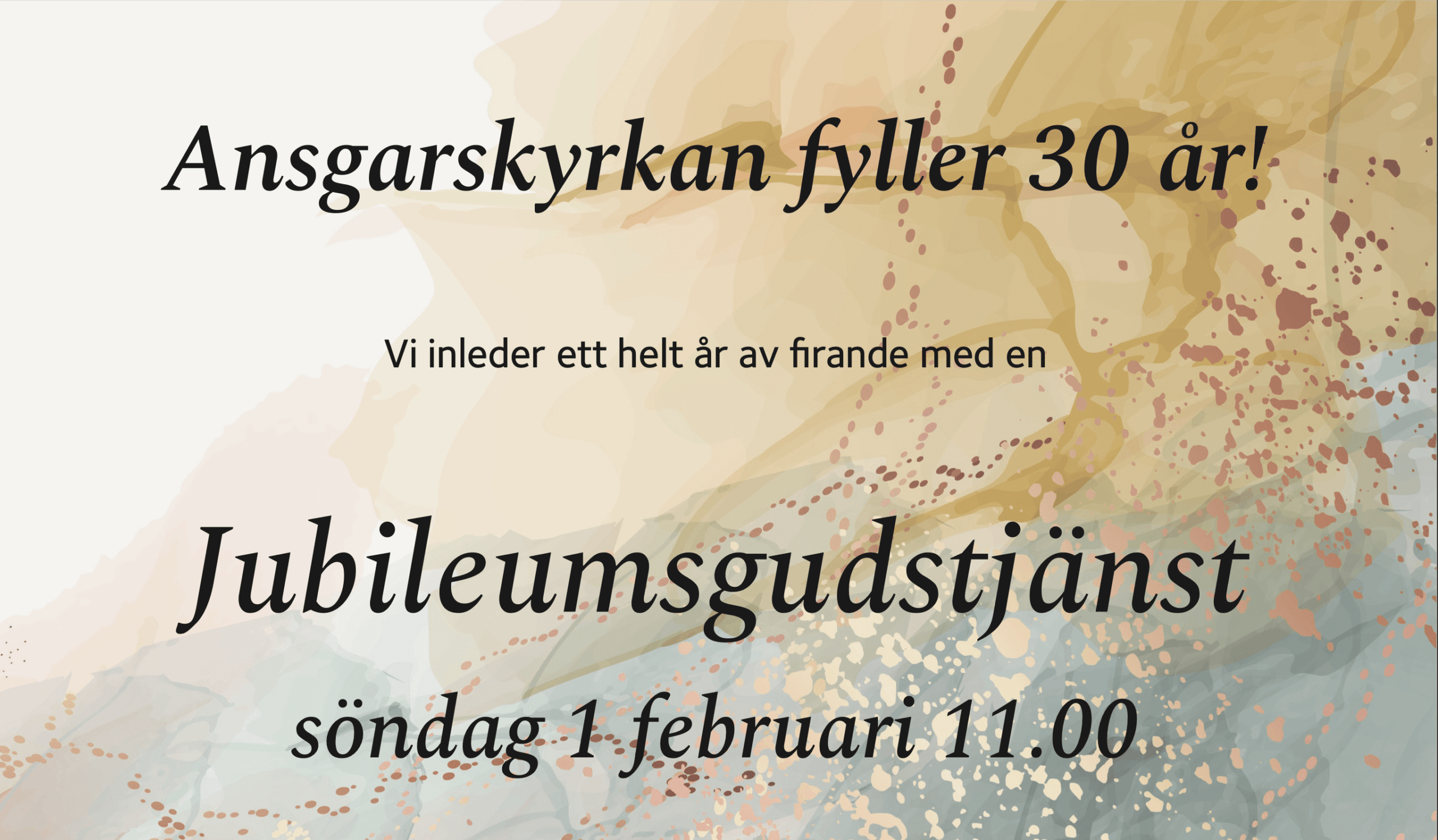 ![]() ![]() 2026 fyller Ansgarskyrkan 30 år och detta firas på en rad sätt under hela året med allt ifrån predikningar av tidigare pastorer, föreläsningar, konserter och en jubileumshelg 3e advent. 1a februari inleder vi jubileumsåret med den första jubileumsgudstjänsten. Predikan: Ulf Schöjer, pastor och församlingssföreståndare 1986-1994 Musik: Ansgarskyrkans Vokalensemble under ledning av Linnea Sirborn Gudstjänstledning: Ulf […] |